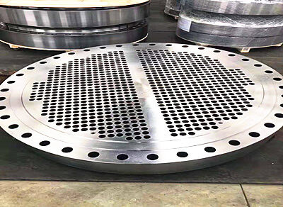 換熱器管板法蘭就是在一個法蘭蓋上鉆出比管子外徑一樣略大一些的孔【一個換熱器管板法蘭基本上都是幾百個小孔】,然后將管子穿入小孔焊住固定,這樣就可以起到一種配件的作用。